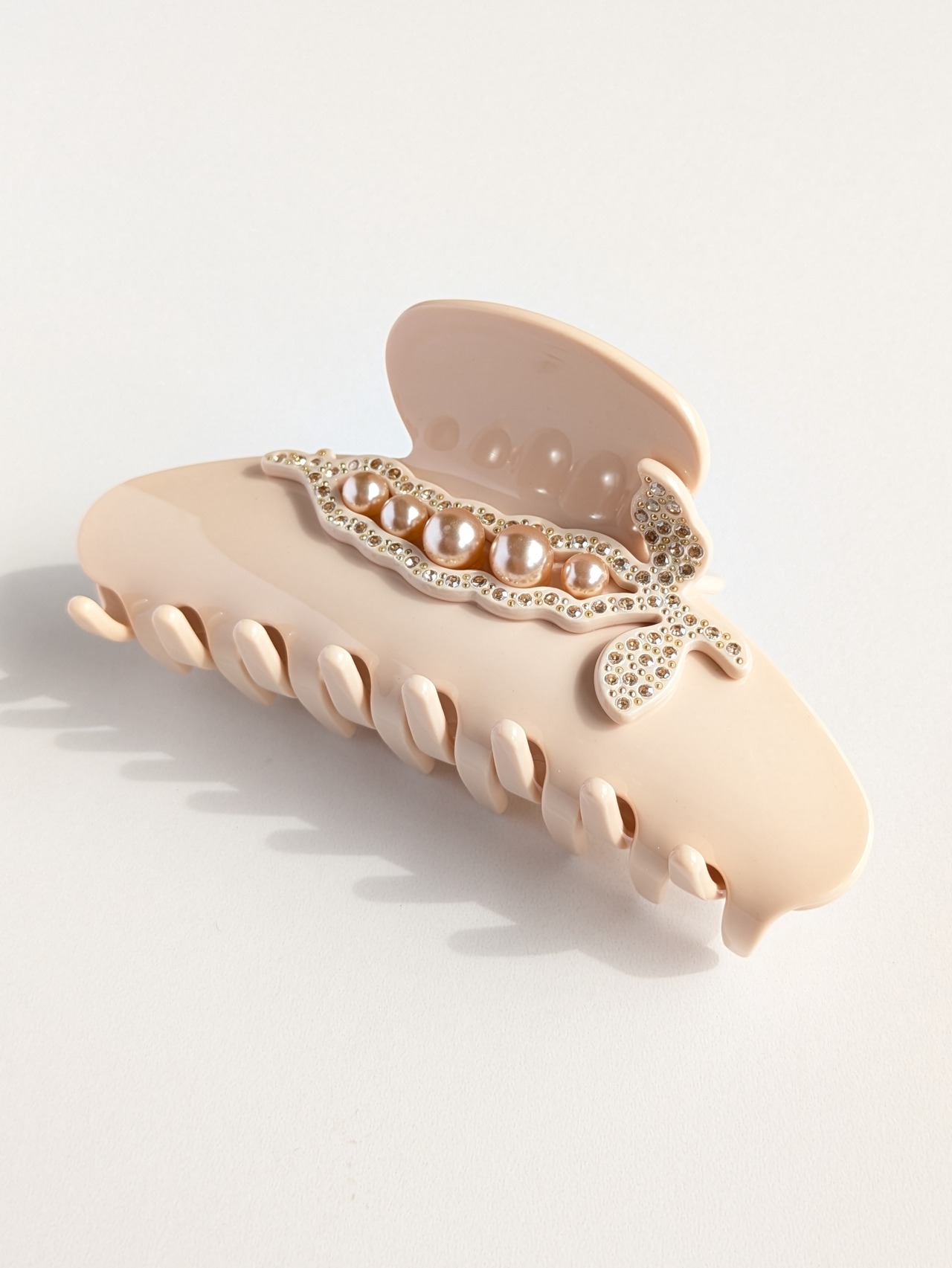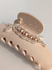 つけるだけで簡単にヘアスタイルがランクアップするエレガントなヘアアクセサリー。両面にあしらわれたシェルパール・ラインストーンがつけるだけで上品で華やかな印象に。