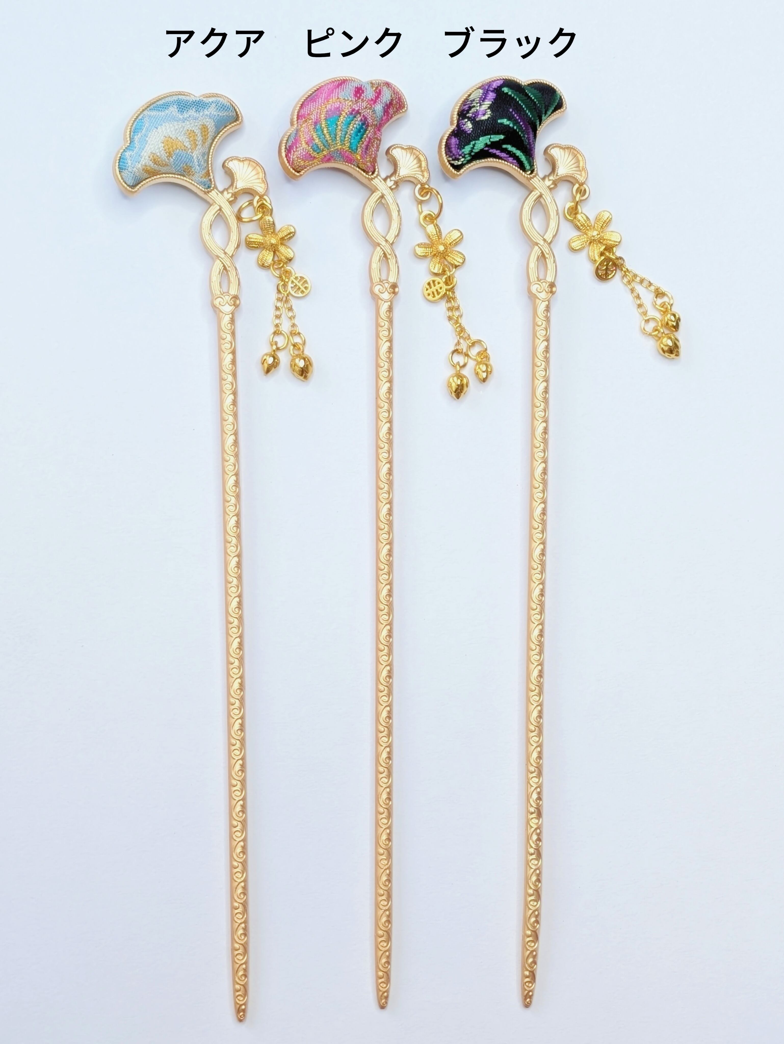 扇のように広がるデザイン、花文様が可憐に揺れる上品でモダンなかんざし。髪を華やかにまとめながら、粋な遊び心を演出します。