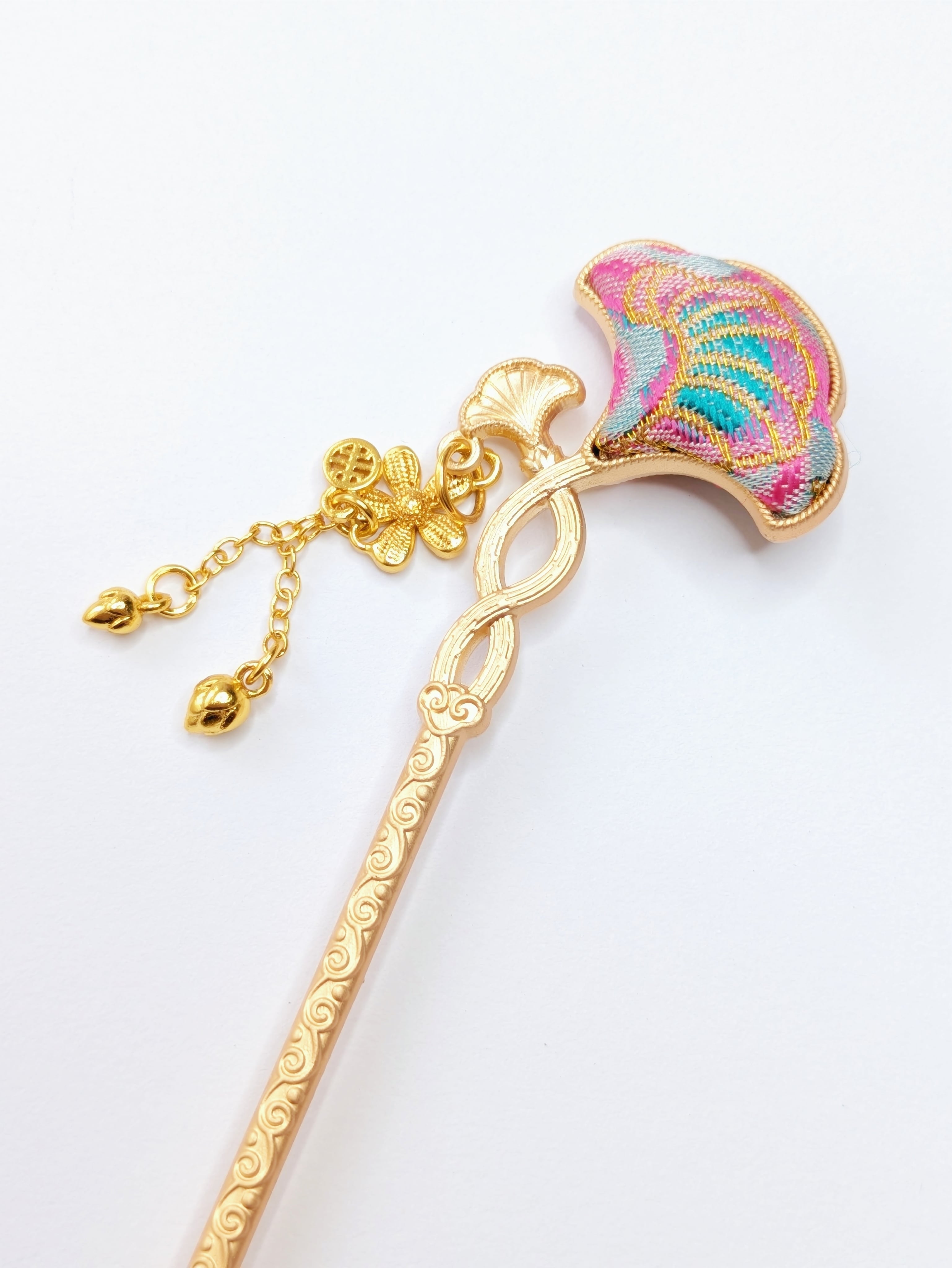 古くから伝わる美の織物「宋錦」を贅沢に使用した花扇(はなおうぎ)簪。