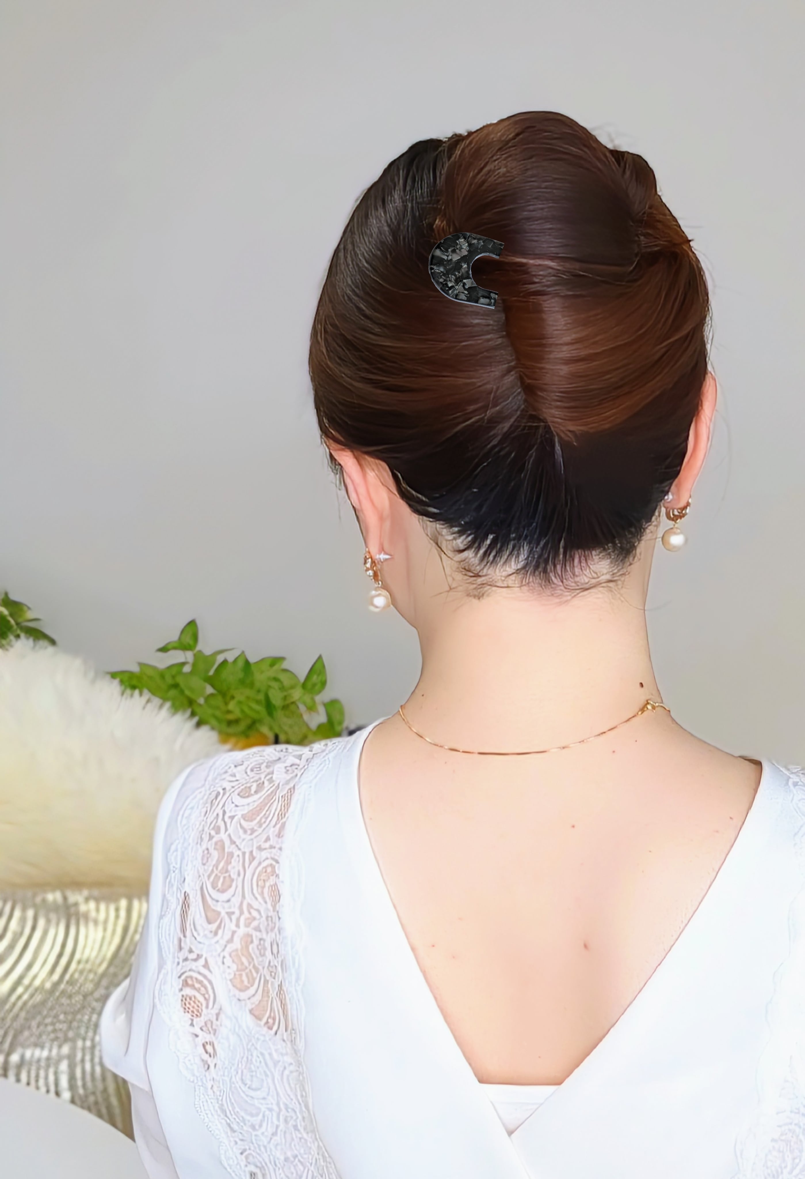 長さ12cmはヘアコームの中では長めの作りです。シニヨン(お団子)ヘアアレンジ、夜会巻きヘアと1本で様々なアレンジをお楽しみいただけます。