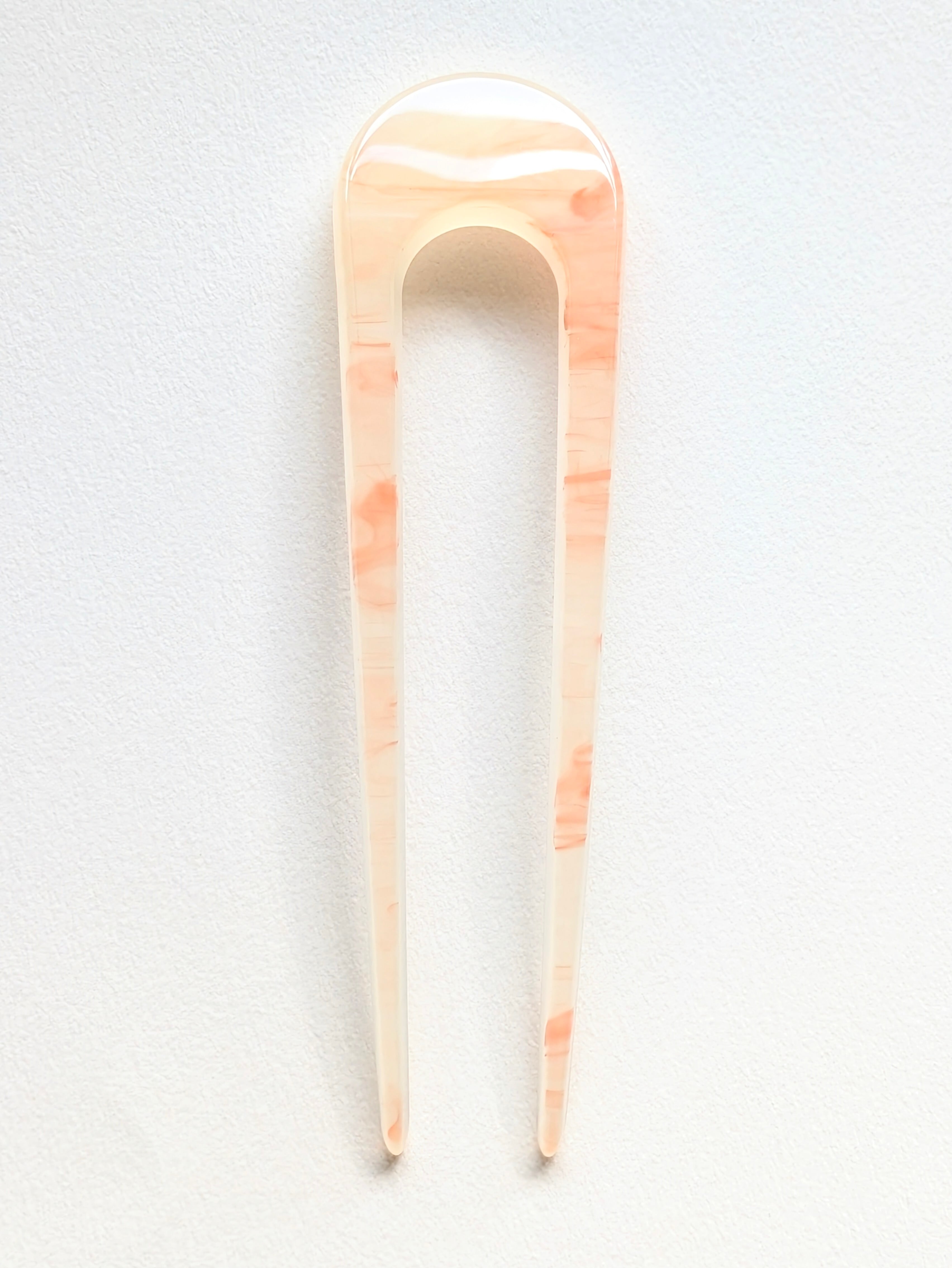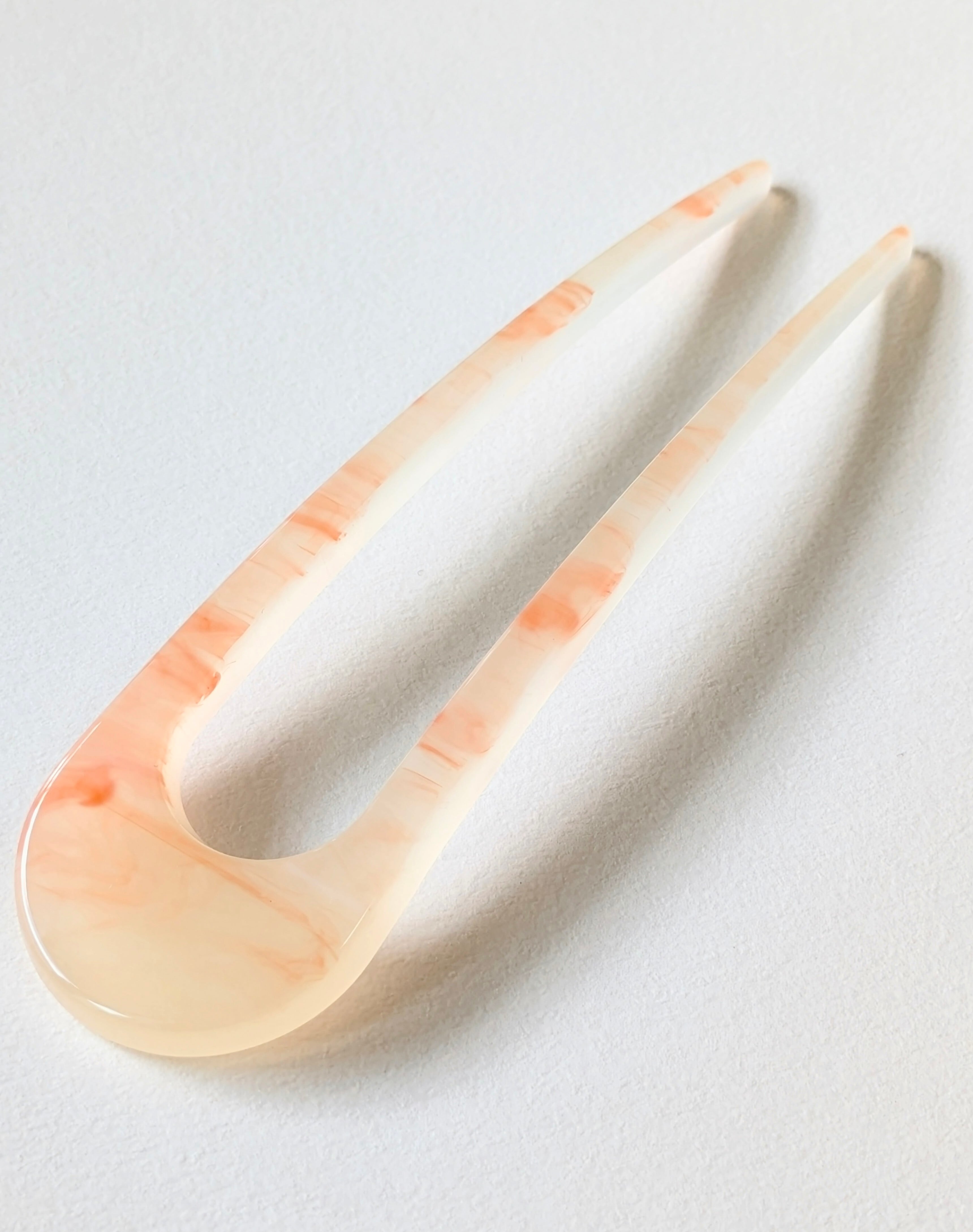 艶めきが美しいマーブル模様のニュアンスカラー。二股かんざしは1本簪より、ホールド力もあり、簡単に自分で髪をアップできるヘアアクセサリーです。